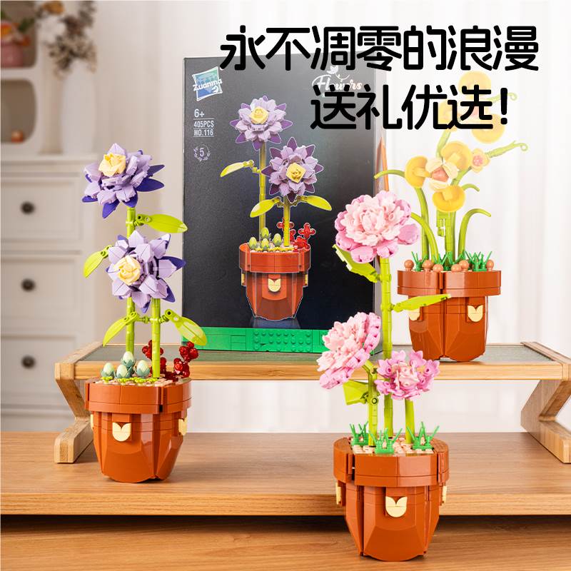 DiamondHorse116-6CarnationBuildingBlocksFlowerMusicHighStyleSmallParticleBuildingBlocksFlowerToysforBoysandGirlsPuzzleToys