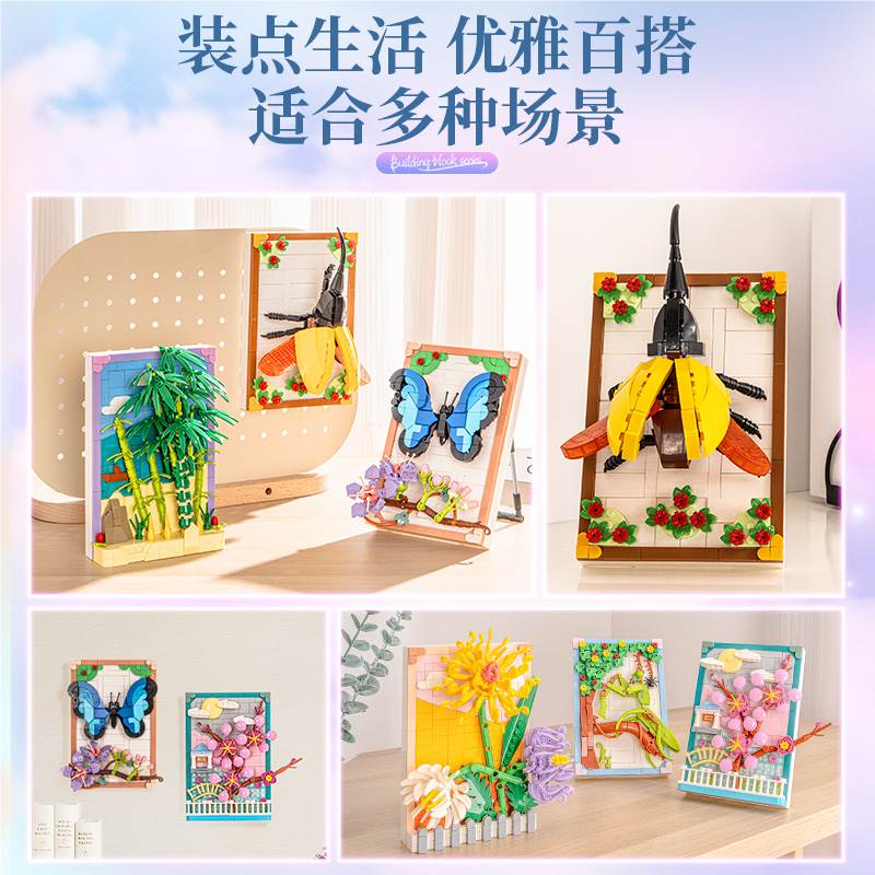 DiamondHorseInsectUnicornFairyPhotoFrame112-7LegostyleSmallParticleBuildingBlocksFlowerChildren'sBoysandGirlsCrossborderToyPuzzleToy