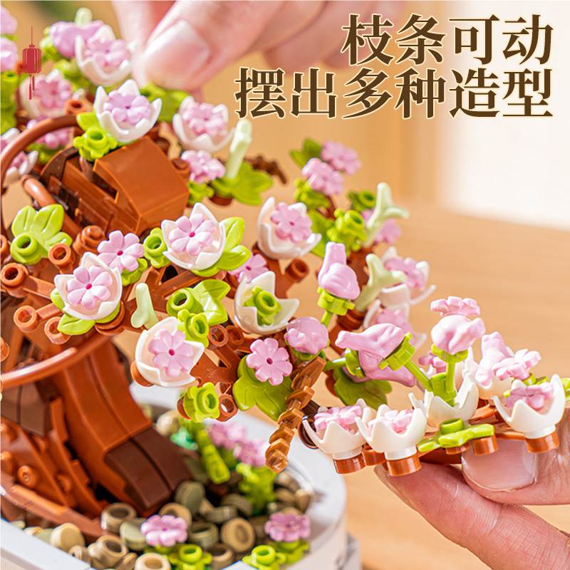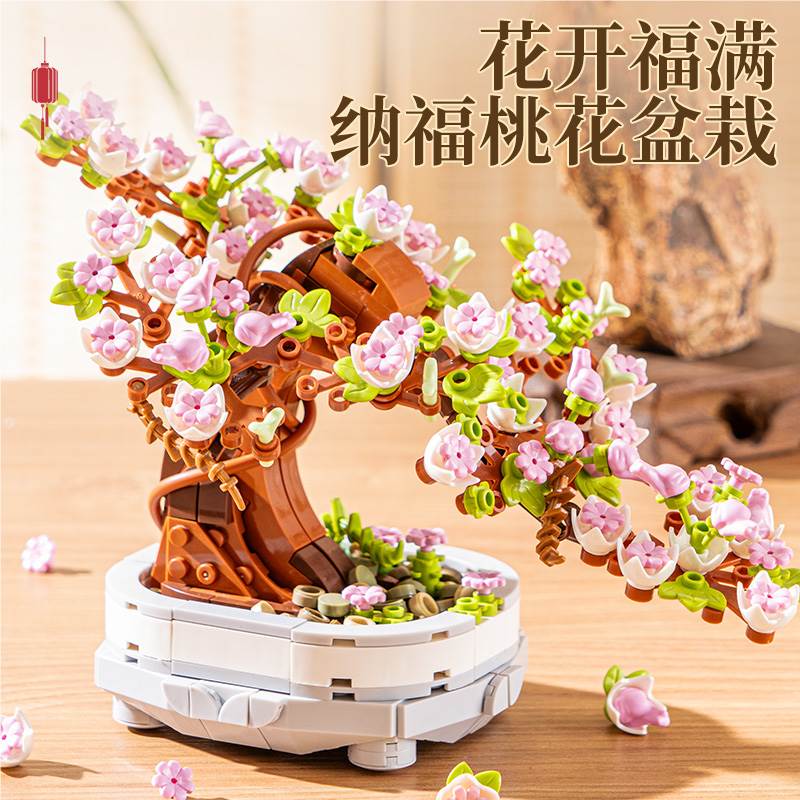 DiamondHorse100-2PeachSpringLegostylebuildingblocks,flowerpottedplants,boys'andgirls'toys,puzzletoys