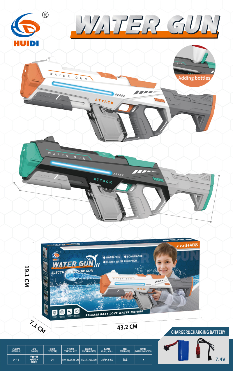 Electric water gun, electric repeating automatic hand-in-one belt, water absorption belt, light