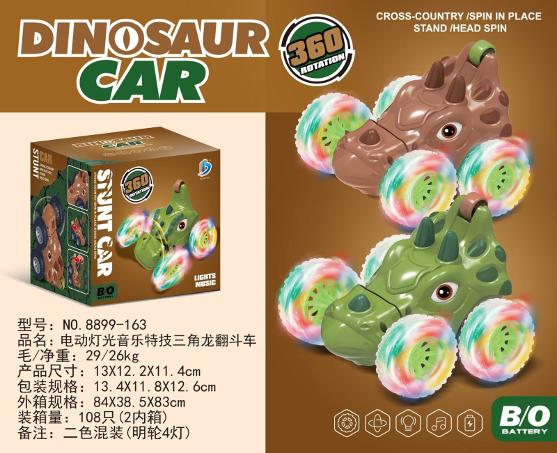 Electric lighting, music, special effects, triangular dragon dump truck, two-color mixed (paddle wheel, 4 lights)