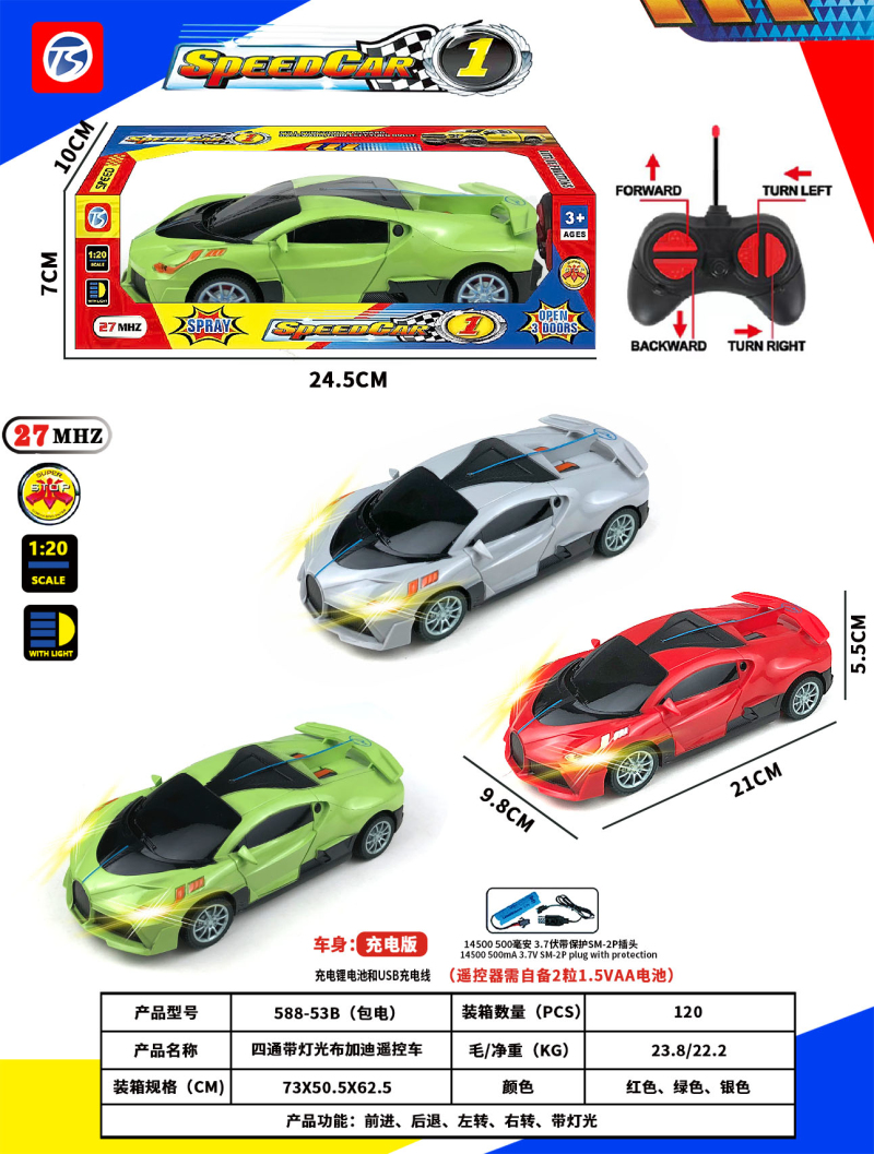 Four-way Bugatti remote control car with lightingforward. walk backwards. turn left. turn right. Bring lights.
