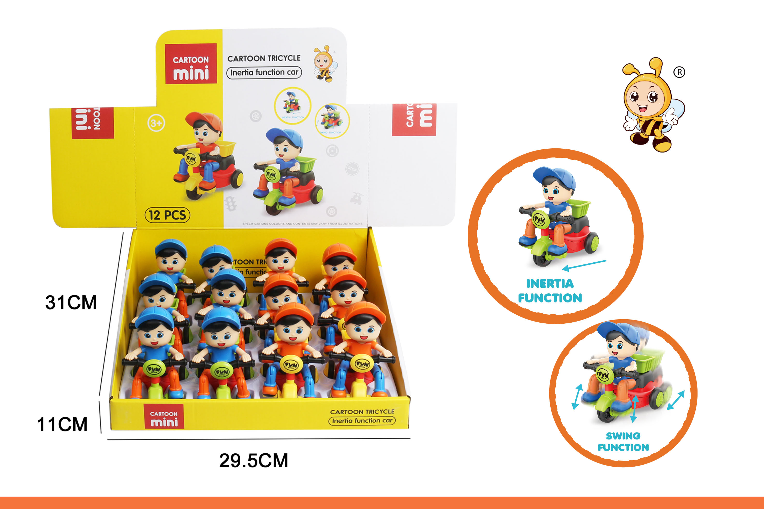 Cartoon three-wheeled inertia vehicle (12 pieces/box) two-color mixed