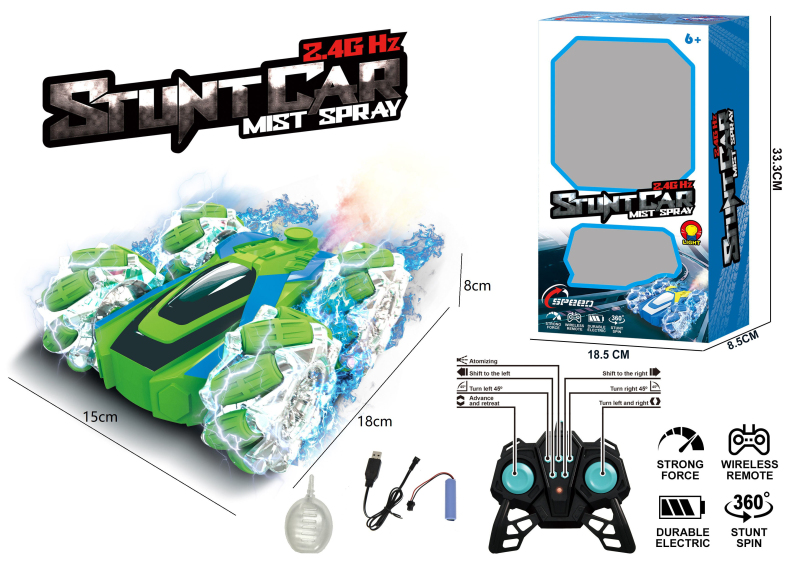 2.4G ten-pass remote control spray stunt double-sided side car (power included)