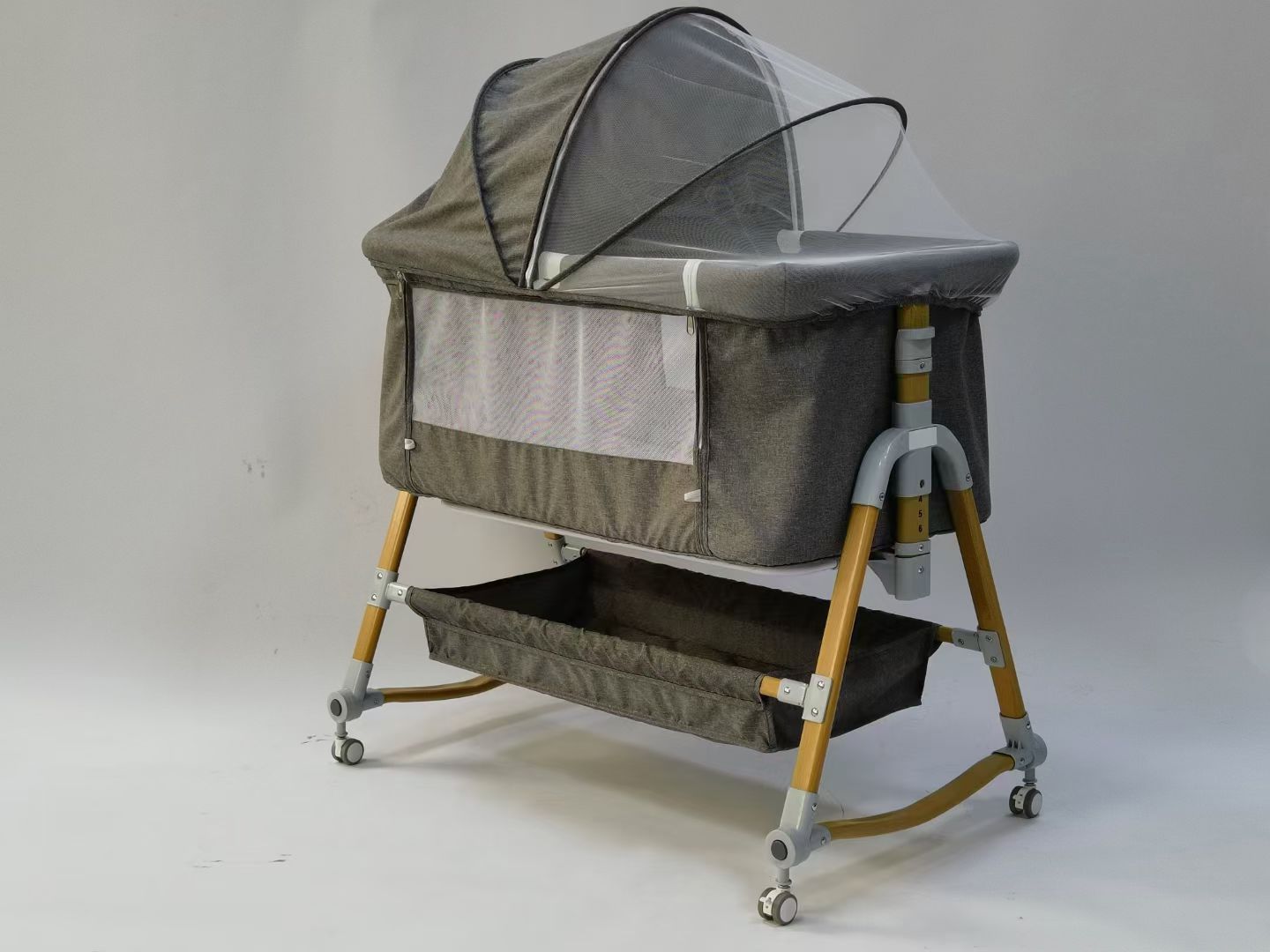 White tube aluminum alloy edge crib splicing bed cradle bed movable portable foldable lifting baby bed